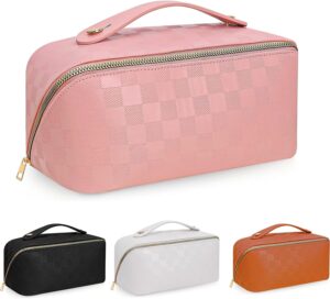Travel Checkered Cosmetic Bags PU Leather Waterproof