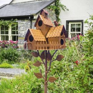 Birdhouse Garden Stakes Metal Bird Feeder